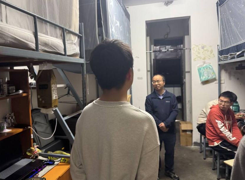 在对学生宿舍的随机抽查中,院长针对学生宿舍外卖安全作为重点进行强调,建议同学们尽量减少点外卖的次数或尽量选择一些规模较大的饭店而非一些小店铺,并建议大家选择学校食堂;对学生自身安全方面,由于昼夜温差较大,提醒同学们及时添衣,注意不要着凉;最后针对部分宿舍打游戏情况比较严重一事提出少打游戏多看书等建议。