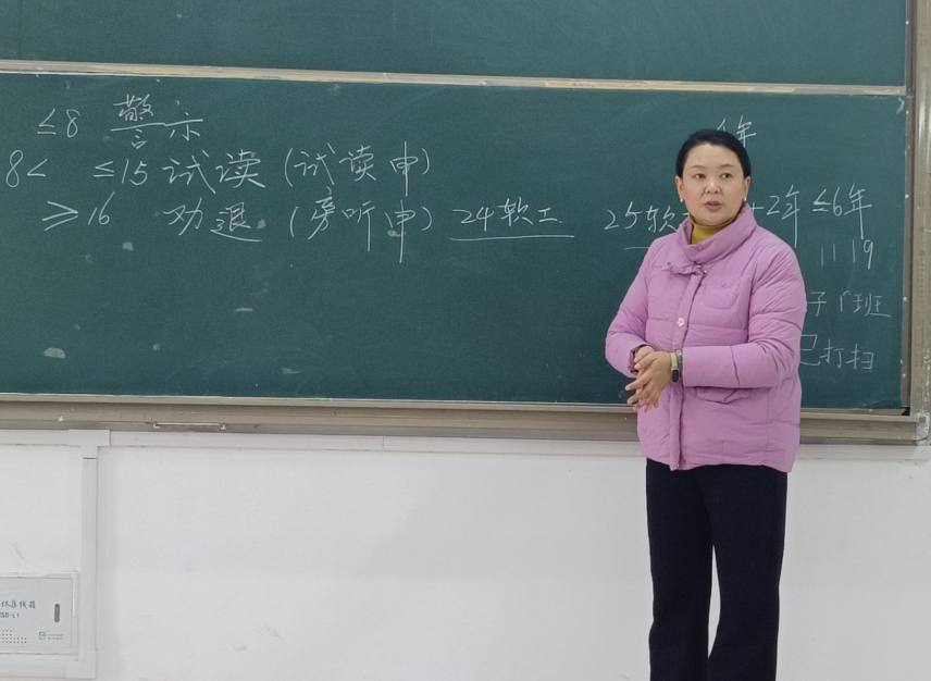 首先,就最近学校学业警示的发布,辅导员先详解了本校的学业警示规章制度,举出往届学长学姐的例子,反复提醒学业的重要性。告诉对于已经被学业警示的同学,要学会正视问题,并采取积极的措施去解决。同时,学业警示不仅是针对成绩不理想的同学,而是针对每一位可能在学习中面临不同挑战的学生。辅导员特别提到:“每个人的成长道路上都会有起伏,但只要你们保持乐观积极的心态,就能突破难关,走向成功。”正视学业压力,合理规划时间,改善学习习惯,从而实现自我提升和目标的达成 。