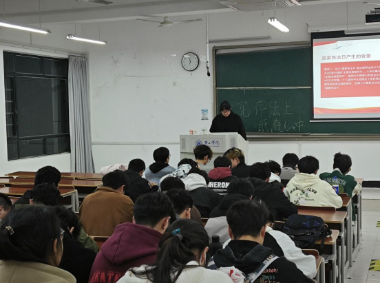 活动伊始,活动负责人先播放了一段有关国家宪法日的宣传视频,同学们认真观看,通过荧幕中生动的介绍,让同学们对宪法产生了敬畏之心。视频播放完毕后,活动负责人趁热打铁,开始普及国家宪法日的相关知识,从产生背景到正式确立以及由此产生的意义等等,结合具体案例,为同学们讲解宪法的重要性和作用,引导同学们树立法治观念,自觉遵守法律法规。