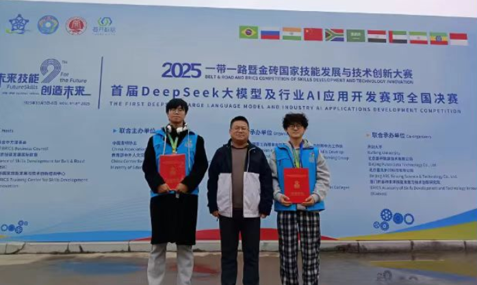 11月6日到8日,在河南开封大学举行的2025“一带一路”暨金砖国家技能发展与技术创新大赛首届DeepSeek大模型及行业AI应用开发赛全国总决赛中,由沈来信老师指导、冯克锋领衔的代表队同样表现不俗,荣获全国三等奖。该团队在安徽赛区选拔赛中位列第一,成功取得参赛资格。