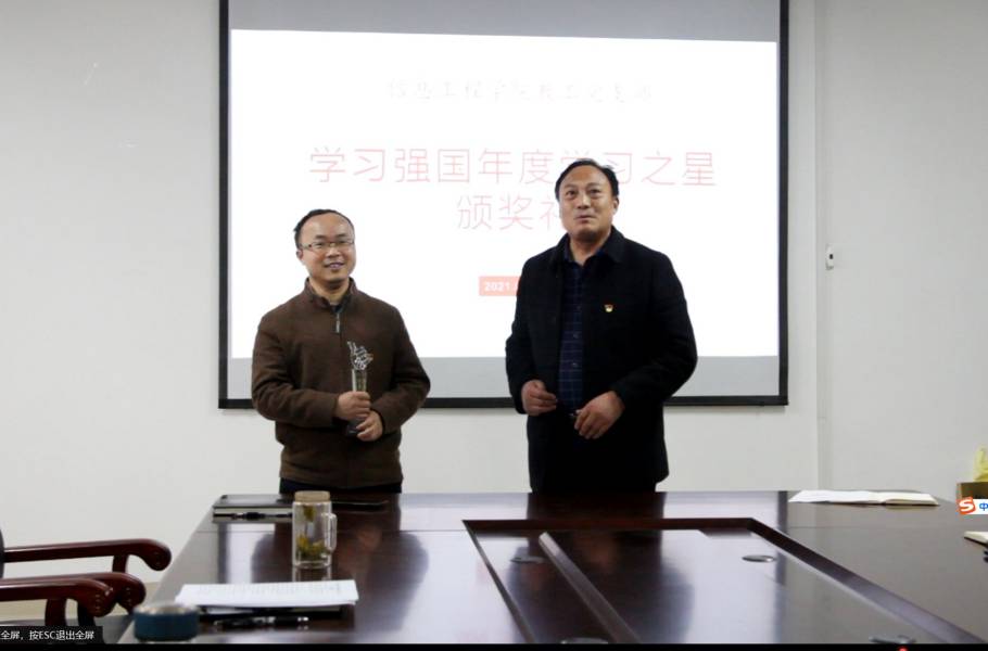 2021年4月14日下午,太阳成集团tyc9728教工党支部在院会议室举行2021年度一季度学习强国“学习积极奖”颁奖仪式,仪式由支部副书记韩静主持。