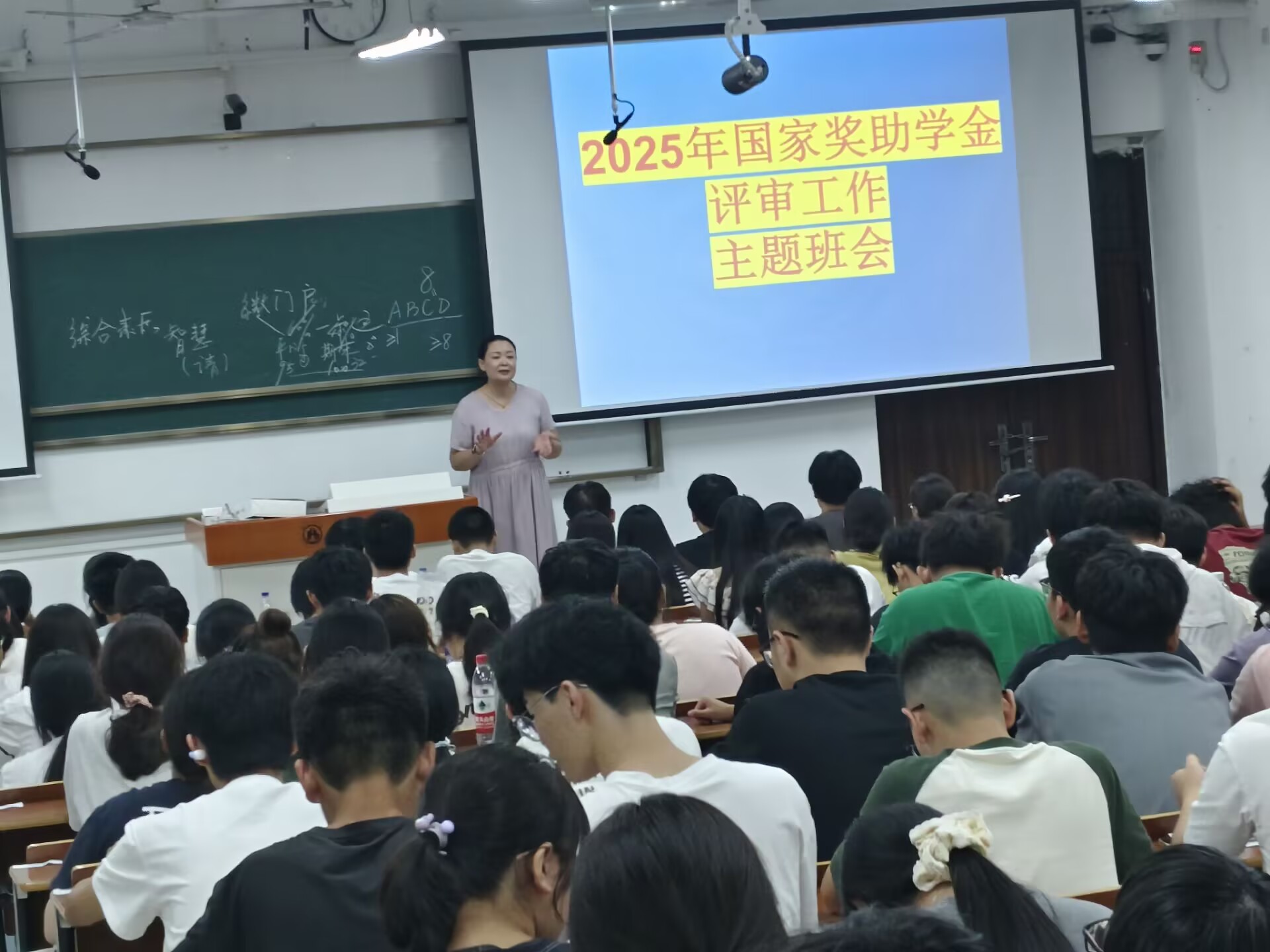 9月19日,25集成电路、25软件工程、25光信息在1405教室开展国家奖助学金评审主题班会。班会由辅导员柳老师主持。