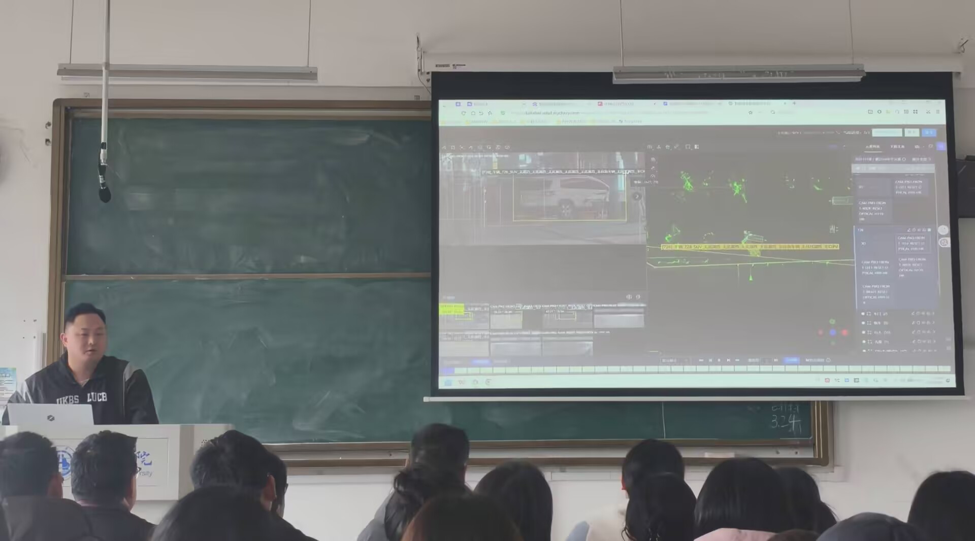 为让抽象的职业内容更易理解,主讲人结合三个典型应用场景展开详细讲解,分别拆解了教AI精准认猫、听懂各类方言、助力自动驾驶的核心工作逻辑,直观展示了人工智能训练师的日常工作内容。同时,主讲人现场演示了AI标注工具的操作界面,清晰拆解了从数据标注到模型优化的完整工作流程,让同学们切实感受该职业的实操性与专业性。