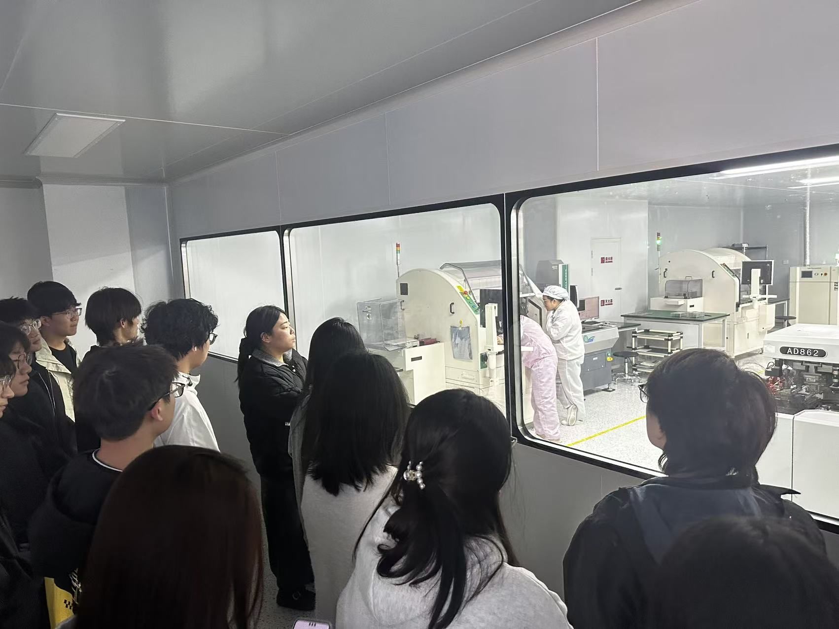 黄山光瑞通信是专注于光电子器件、光模块研发与生产的高新技术企业,产品广泛应用于5G通信、数据中心、光纤传输等核心领域。在企业工作人员的引导下,师生们先后参观了产品展厅、生产车间与测试实验室。展厅内,学生们系统了解了企业发展历程、核心产品与技术优势,直观认识了光模块、光纤器件等通信设备的外观与应用场景;生产车间中,大家观摩了光器件组装、光纤熔接、自动化生产全流程,深切感受到企业严谨的生产标准与精细化管理模式;测试实验室里,技术人员演示了光功率计、光谱分析仪等专业设备的操作,详细讲解了产品性能检测的关键环节与重要意义。