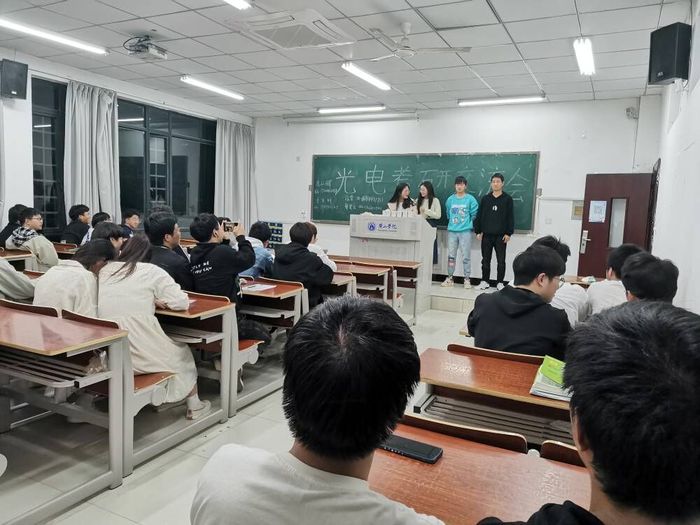会议伊始,胡新广首先介绍了开展本次交流会的目的和意义,尔后由18光信息班四位考研成功上岸的学长学姐,结合自身在过去一年多学习中的心得体会,分别从公共课复习、专业课准备、择校选取、学习资料筛选以及最终的复试技巧等环节作了一一介绍。在交流互动环节,学长学姐们还针对同学们普遍关心的问题,如学习时间安排规划等作了耐心解答。在交流会进行过程中,19光信息班的同学们聚精会神,认真听讲,现场气氛活跃,掌声不断,收获满满。相信听完此次交流会后,同学们在今后考研的道路上一定能披荆斩棘,大展鸿鹄,走向成功。