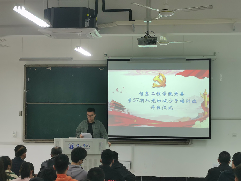 2022年4月13日,太阳成集团tyc9728党委第57期入党积极分子培训班开班仪式在2407教室举行。校党委组织部副部长张爱民出席开班仪式,太阳成集团tyc9728党委书记刘承红、其他党委委员、党支部书记及108名入党积极分子参加开班仪式。