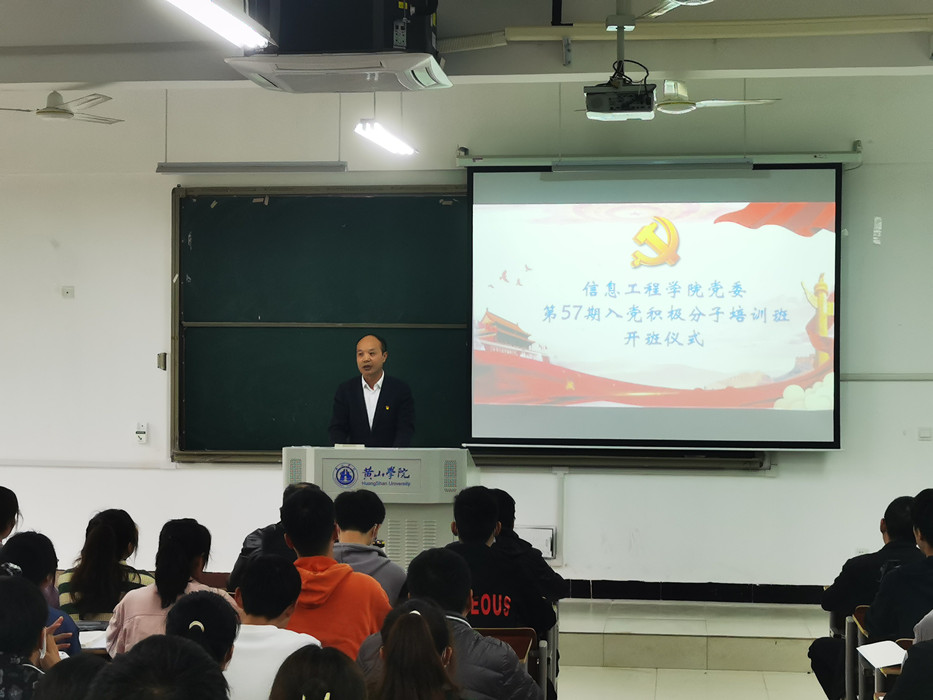 开班典礼在全体国歌奏唱中拉开序幕。刘承红首先代表学院党委对参加此次培训班的全体学员表示热烈欢迎,他在开班致辞中从“为什么学”、“学什么”、“怎么学”三个方面对学员参加入党积极分子培训班学习给出了指导意见。他表示,从制度上,入党积极分子接受教育培训是党章党规的明确要求,学员们要通过学习加深对党的了解,进一步明确自身的政治选择。希望学员们能够做好时间管理、自我从严要求,认真参加每一次的学习、交流和实践,从百年党史中汲取奋进力量,在学思践悟中增进干事能力,早日实现理想,成为一名优秀的中国共产党党员。