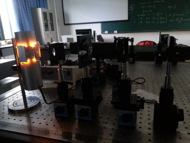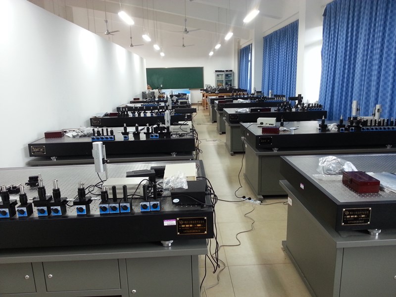 物理光学实验室和工程光学实验室 该实验室以wsz-2光学平台为主要教学设备,后又增添了白光全息照相,阿贝成像原理和平行光管等设备,平台系统由光学实验平台、平台工作台、多维调整架、光源、光学元件组成。教师可以根据实验要求,选择合适的组件安排实验,实验室可进行包括几何光学实验8个,物理光学实验11个,近代光学实验7个。其中有9个是演示实验,其他均为测量实验。仪器采用开放式教学,老师可以根据实验要求选用合适的通用组件安排多种实验,侧重培养学生对光路的调节能力和工程光学基础概念的理解,进行开放式教学,培养学生的思维能力及实验技巧,提高教学质量。