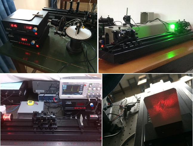 激光实验室 (现在文峰楼6407)设立于2012年。最初的课程开设主要包括:半导体泵浦KTP晶体、氦氖激光器光斑分布及发散角测量、晶体电光效应调制以及氦氖激光束模式分析。之后于2014年增加了高斯光束参数测量与透镜变换以及半导体激光器输出特性与光谱特性测量的实验课程。除此之外,本实验室设备还可进行一些设计实验,考验学生们对于激光原理理论方面的思考理解以及动手操作能力,也为进行毕业论文的学生提供了实验平台。