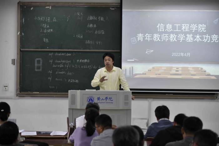 为促进学院教师的教学能力提升,学院依托校第十四届青年教师教学基本功竞赛参赛选手的选拔工作,进行本次学院初赛。参加学院初赛的八名选手经教研室推荐产生,经过充分准备,在讲台上一展风采。