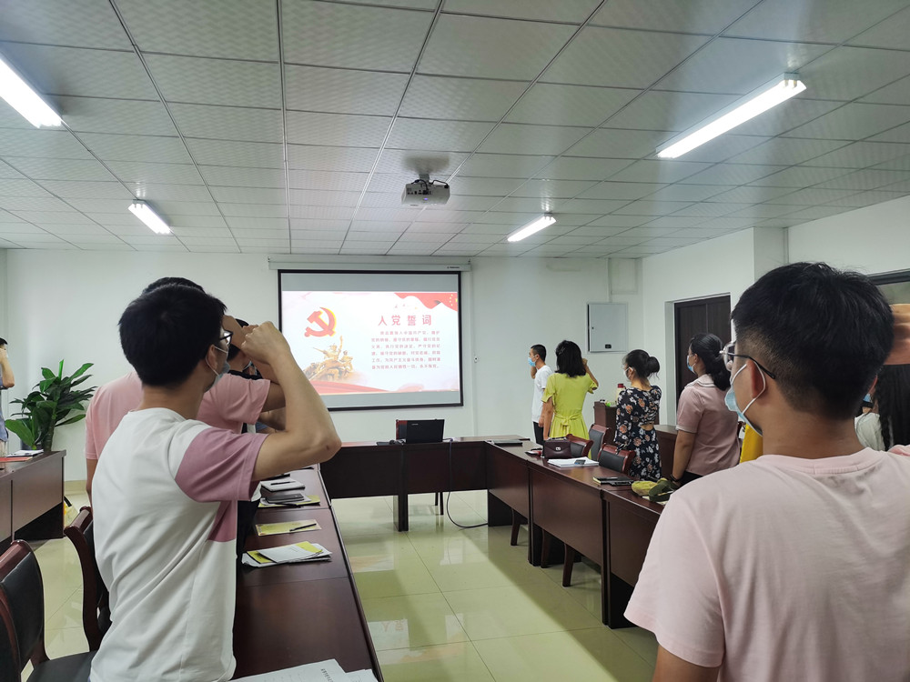 党课后,在光信息支部书记周佳佳的带领下,党员同志们庄严地举起右手,握拳宣誓,重温入党誓词。