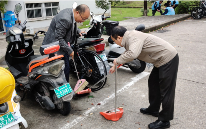 此次活动中,志愿者们对大学生活动中心、二食堂周边进行了为期一小时的集中清理整治。师生分工明确,对责任区内道路、绿地、绿化带进行卫生整治,清理大量垃圾,并对路面上的电动车进行集中摆放。