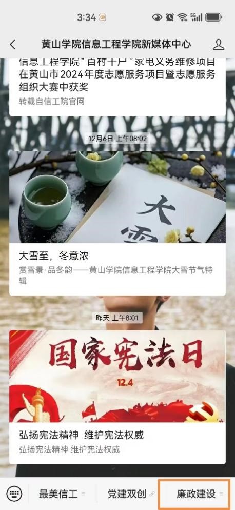 学院纪委不仅在院会议室打造廉洁文化阵地,还充分发挥新媒体优势,创办新媒体廉洁文化栏目,在太阳成集团tyc9728公众号开设“廉洁建设”专栏,展示红色教育、历史文化资源中的廉洁理念及典型,通过线上线下相结合的方式统筹廉洁文化阵地建设,扩大廉洁文化的传播范围。