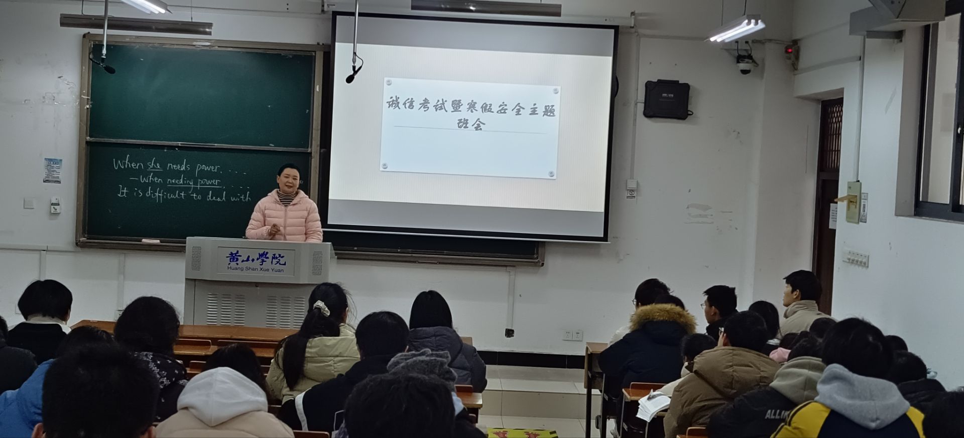 12月28日,23软件工程1班、23软件工程2班在1204开展期末考试诚信暨寒假安全教育主题班会,会上辅导员柳老师通过一些案例重点强调了考试纪律问题,倡导同学们务必诚信考试,并要求同学们全身心有规划有步骤的投入到期末的复习中去,特别是有重修科目的同学一定要合理的安排,同时提醒同学们看好考试时间和考场,不要错过时间。同时寒假在即,提醒同学们认真填写台账,离校前收拾好自己的物品,注意出行安全,同时在假期当中依然要合理的安排自己的休息和学习时间,对谨防电信诈、情感问题、心理健康等其他方面的问题也做了一一的提醒,希望同学们能顺利通过期末考试,开心度过寒假。全体同学们认真聆听。