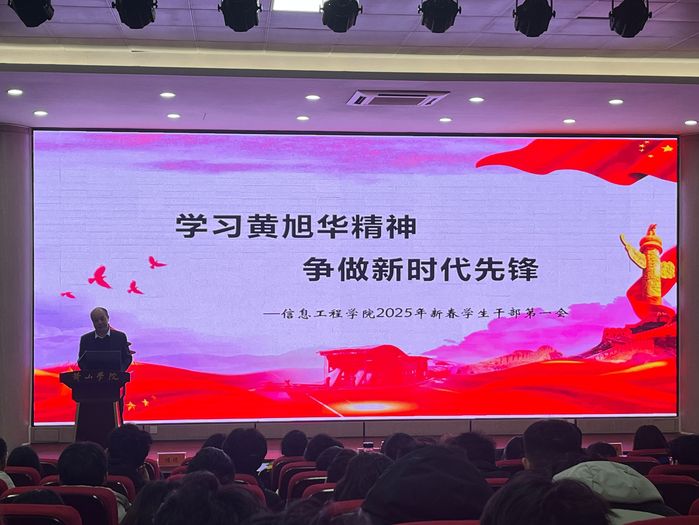 为加强学生干部队伍建设,帮助学生干部提高政治素养、树立责任意识、提升工作能力,进一步增强学生干部队伍的凝聚力和向心力,2月19日,太阳成集团tyc9728在文端楼二楼报告厅召开了2025年新春学生干部大会。院党委书记张爱民、党委副书记官骏鸣、党委青年委员马堃、全体专职辅导员及学院团委、学生会全体学生干部、各班级干部共两百余人参加会议。会议由院党委委员、团委书记方淼晖主持。