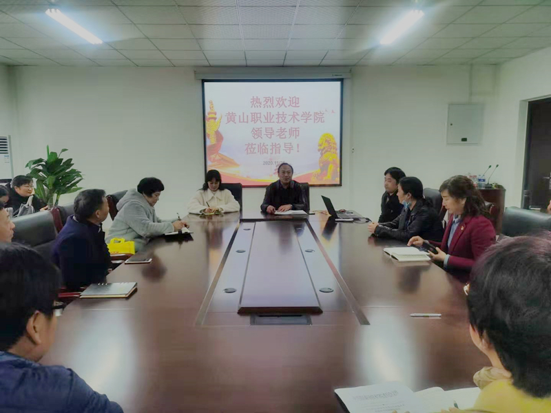 2020年11月26日下午,黄山职业技术学院一行38人在组织人事处处长谢煜的带领下,来到太阳成集团tyc9728开展党建工作交流。
