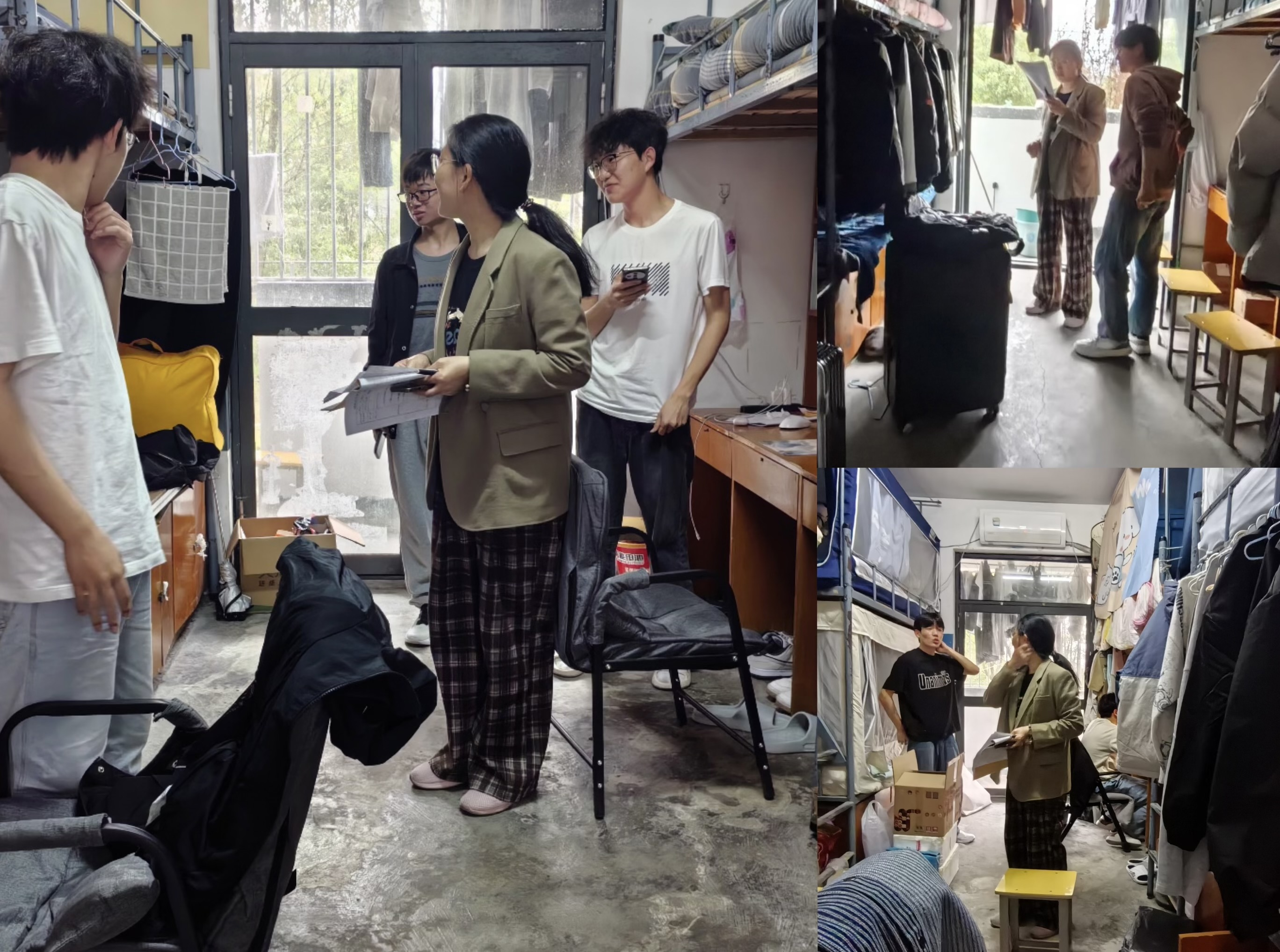 24级三个班的学生主要集中在28栋(男生宿舍)和21栋7楼的(女生宿舍)。通过深入学生宿舍,了解学生最近在学习、生活等方面的具体情况,与学生面对面谈心,了解学生的思想动态和心理动态等。同时,还对寝室安全用电、寝室卫生、寝室关系、日常传染病预防、预防电信诈骗等日常事情进行温馨提示和叮嘱。也对卫生较差寝室、沉迷游戏同学进行提醒和谈心。